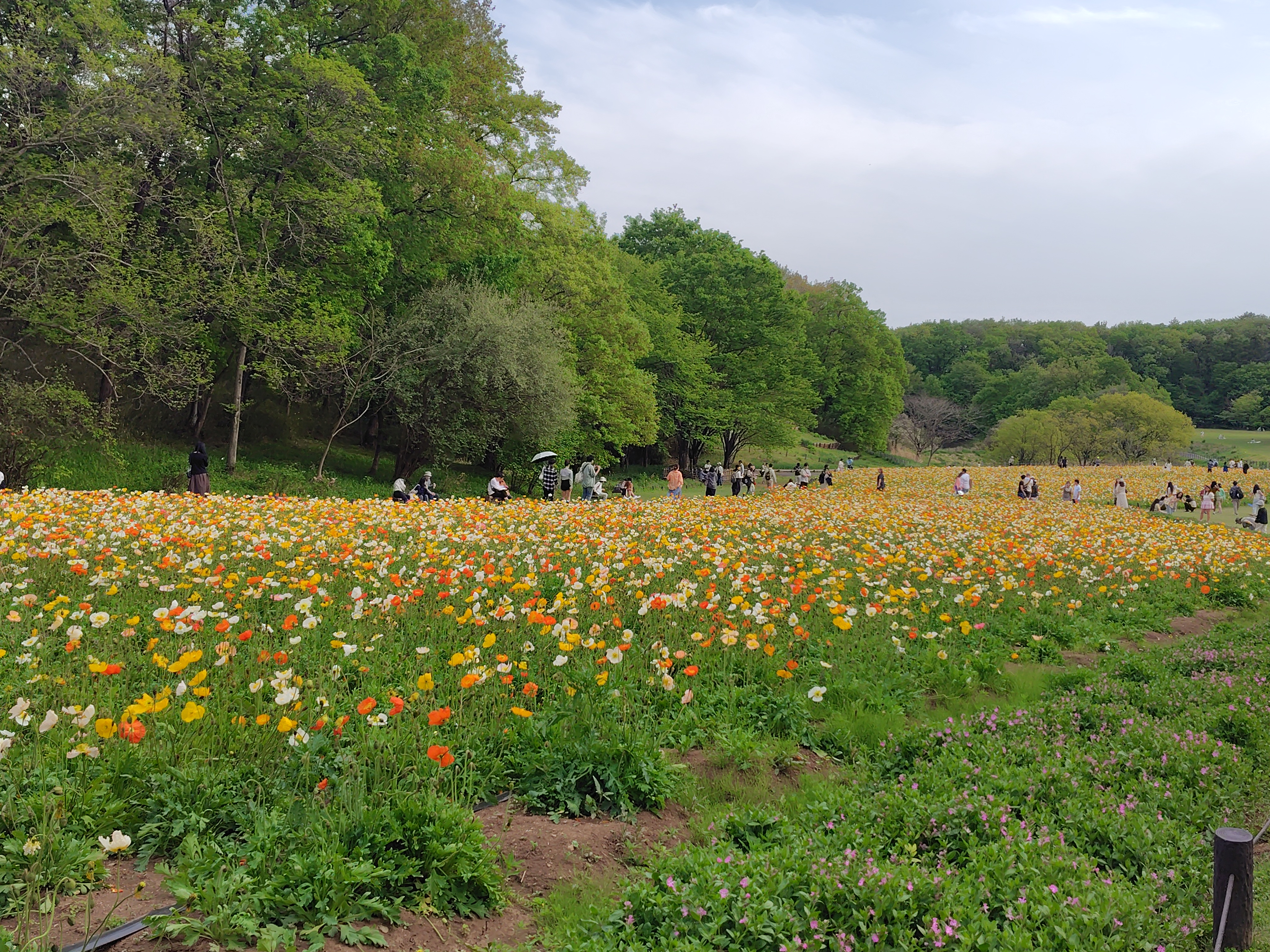 陽気な春の晴れやかな日に、ネモフィラとポピーが満開でした♪